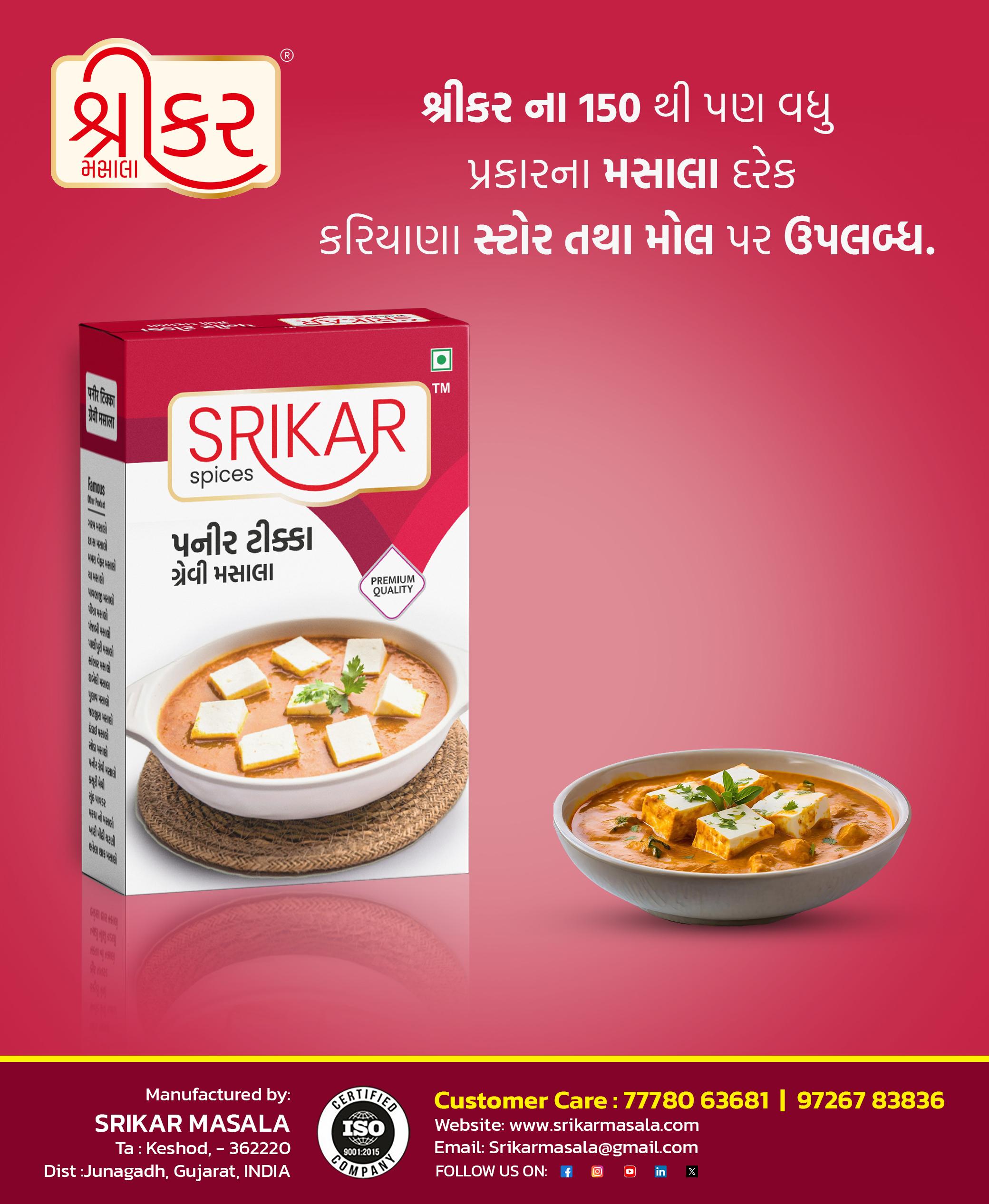 • Use 'Srikar Paneer Tikka Mix' to create a truly memorable meal!