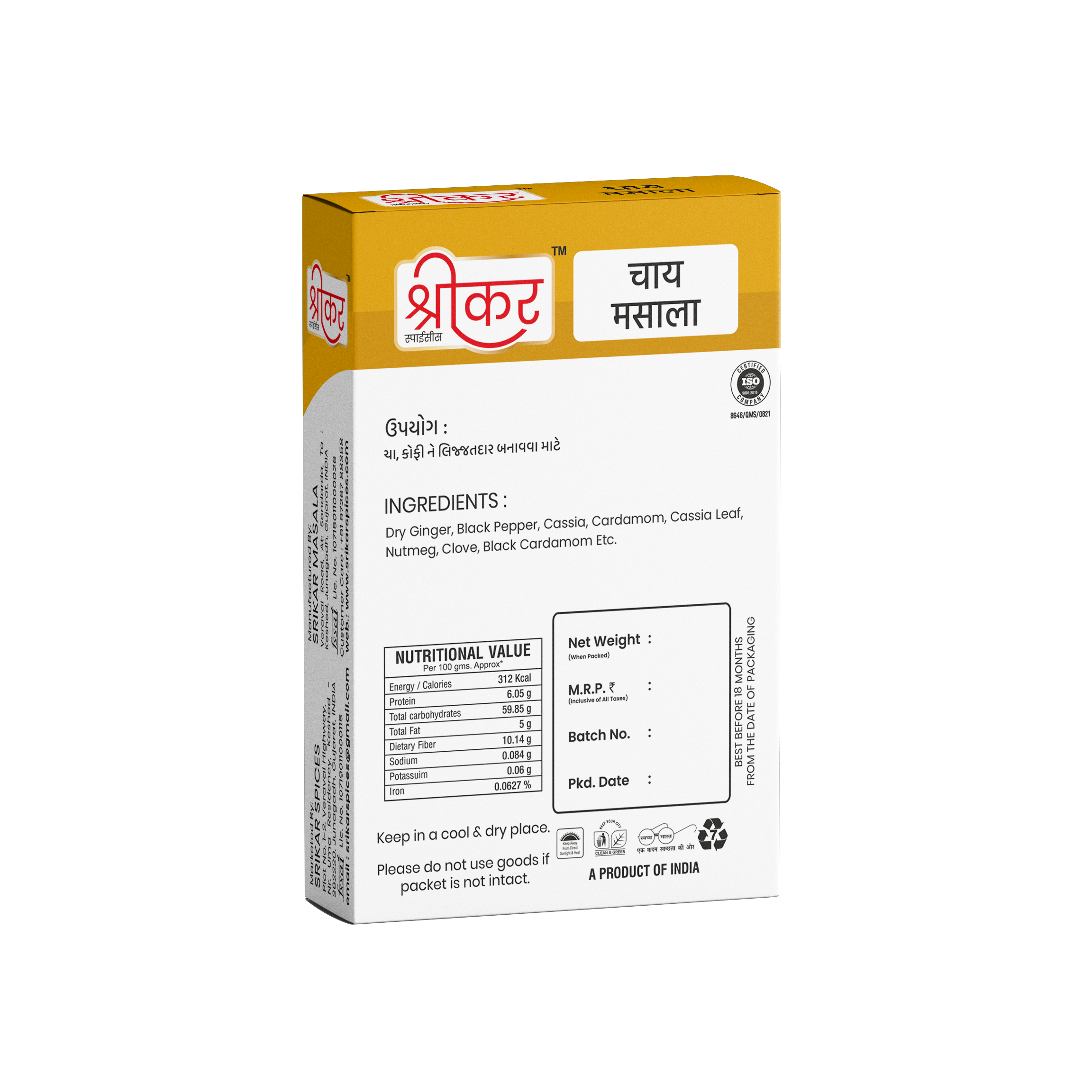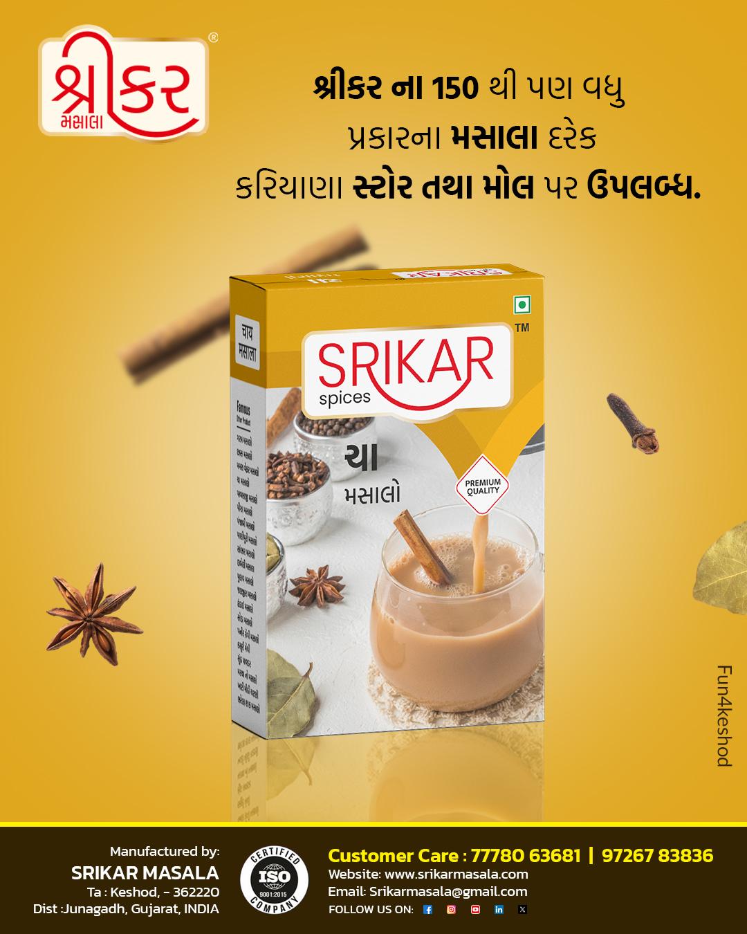 Want the best Masala Chai? Just add a pinch Srikar Tea Masala to your regular tea cup and there it is, you will have the best masala tea in your hands.Srikar Tea Masala is perfect blend of selected herbs that will give you immense pleasure of tea.