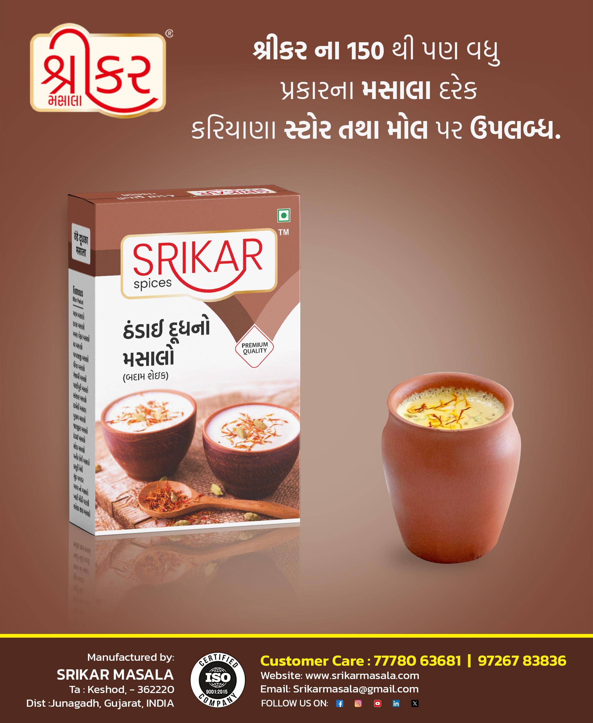 • Thandai & Badam Milk Mix – Srikar Masala Kesar Pista Badam Drink Mix is a rich and aromatic Thandai Powder, made with almonds, pistachios, cashews, saffron, and rose petals, offering a traditional and refreshing taste.